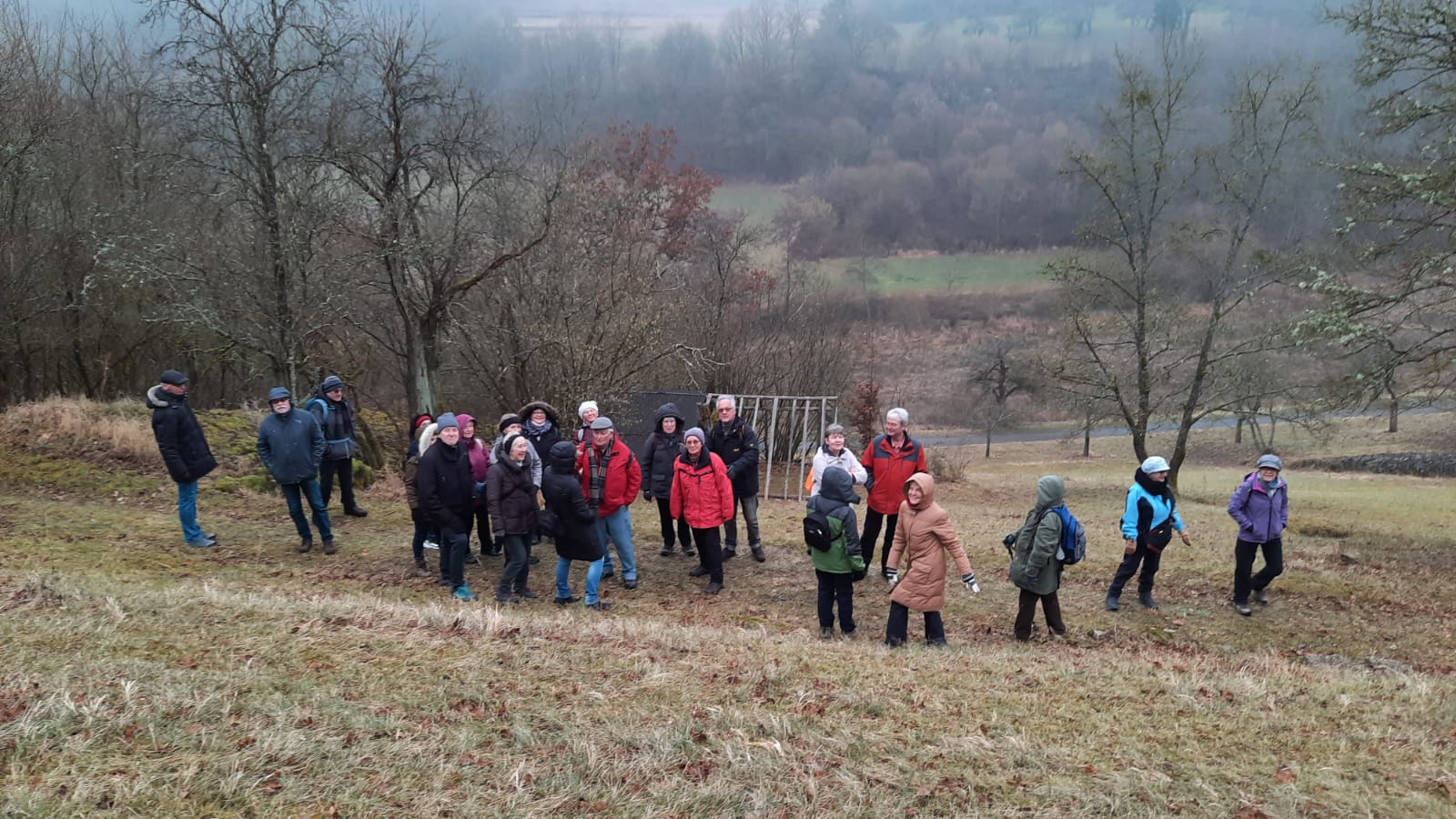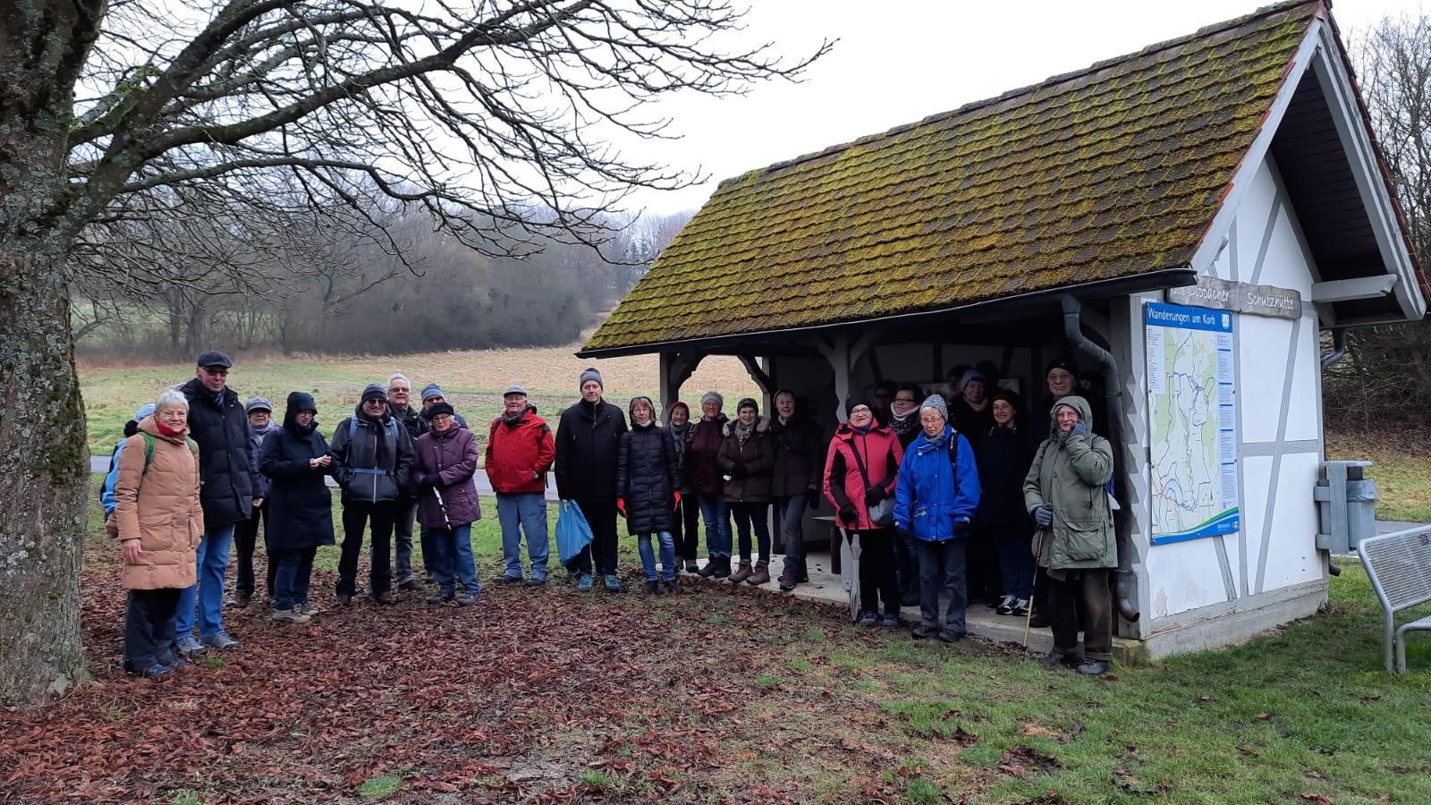 Unsere erste Wanderung im neuen Jahr fand am 16.01.2022 statt. Trotz trübem, nasskaltem Wetter und steigender Coronazahlen konnte Wanderführerin Margarete Ochs 30 Teilnehmer beim Start in Möckmühl begrüßen. Es ging über den Radweg nach Ruchsen, weiter ins naturbelassene Hergstbachtal.  Erstes Ziel waren die Naturdenkmäler „Bachwingert und Wachholderheide“. Diese 3 ha große Fläche wird vom Schwäbischen Albverein gepflegt. Weiter ging es im Hergstbachtal bis zum Weiler Dippach, wo am alten Buswartehäuschen (Dippacher Schutzhütte) eine Pause eingelegt wurde. Zurück ging es über den Schafberg und den Schloßberg  nach Möckmühl, zur Schlusseinkehr ins Sportheim. (hs)