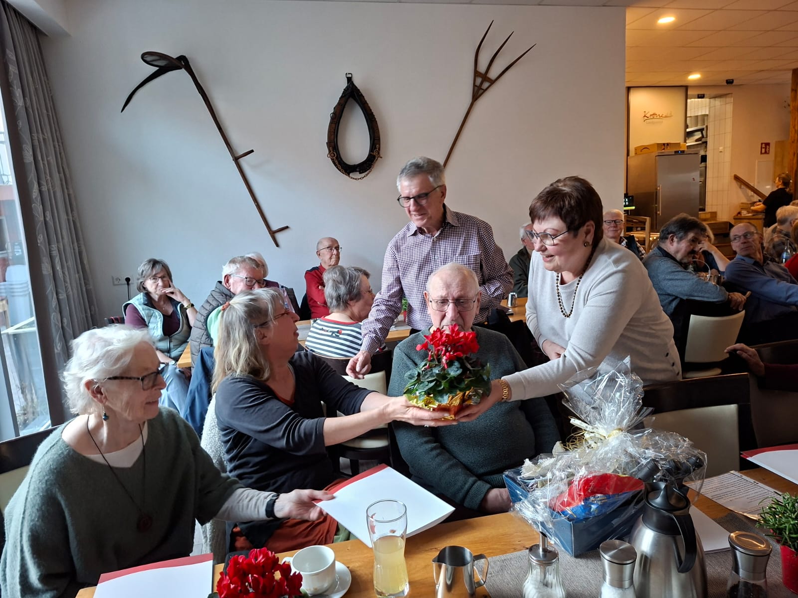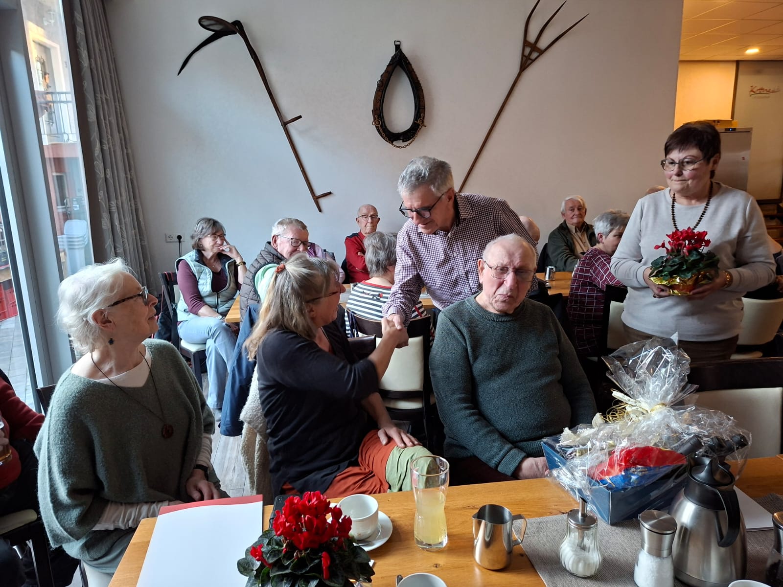 Nach der Begrüßung durch den Vorsitzenden Heinz Schellenbauer wurden sechs langjährige Mitglieder geehrt. Sie erhielten Urkunden und Anstecknadeln sowie als Zeichen des Dankes Weingeschenke beziehungsweise Alpenveilchen.