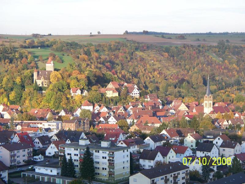 Wahrzeichen der Stadt ist die Burg, mit mittelalterlichem Bergfried. Götz von Berlichingen, der Ritter mit der eisernen Hand, weilte hier von 1517-19 als Amtmann des Herzogs Ulrich von Württemberg.
